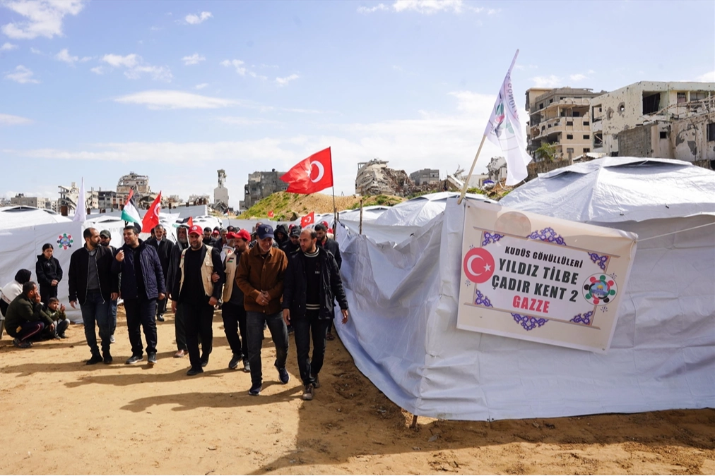 “2. Yıldız Tilbe Çadır Kenti” olarak adlandırılan yerleşkede, İsrail saldırıları nedeniyle evlerini kaybeden ve yerlerinden edilen Filistinli aileler barınma olanağına kavuşacak.