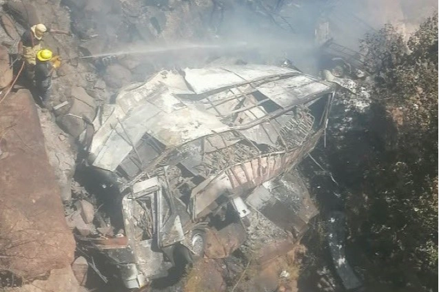 Açıklamada, "Sürücünün kontrolü kaybederek köprüdeki bariyerlere çarpması sonucu otobüsün köprüden geçerek uçuruma düştüğü ve burada alev aldığı iddia ediliyor" denildi.