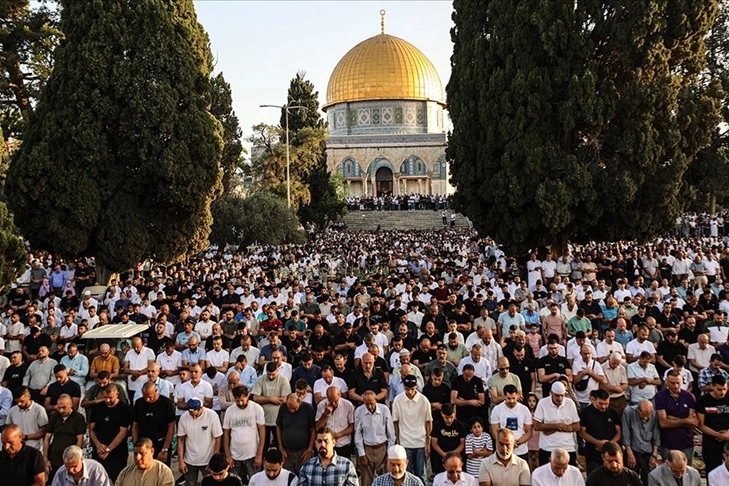 Müslümanlar, İsrail polisinin kısıtlamalarına rağmen işgal altındaki Doğu Kudüs’ün Eski Şehir bölgesinde bulunan Mescid-i Aksa’da Kurban Bayramı namazını eda etti.