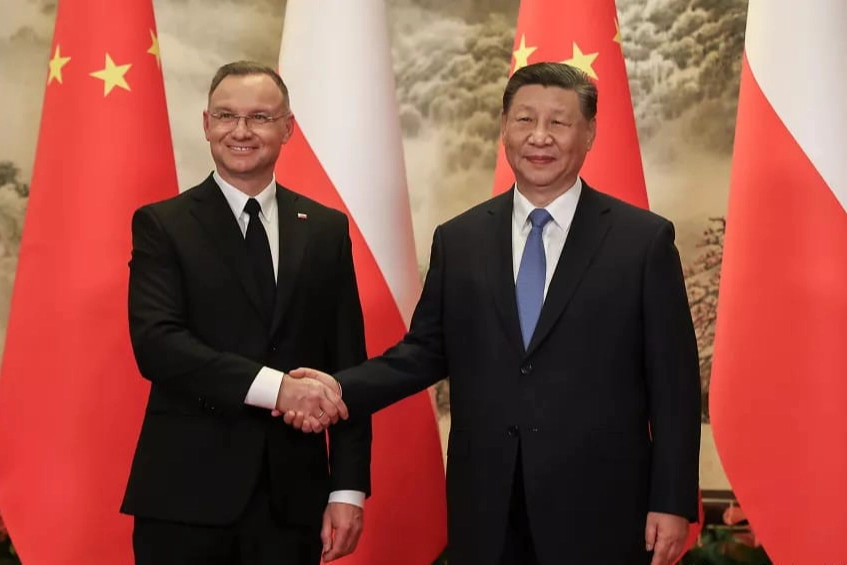 Resmi ziyaret çerçevesinde Çin’de bulunan Polonya Cumhurbaşkanı Andrzej Duda, Çin Devlet Başkanı Xi Jinping ile bir araya geldi. Xi tarafından resmi törenle karşılanan Duda, Xi ile baş başa ve heyetler arası görüşme gerçekleştirdi. Dört saat süren görüşmelerde diplomasi, güvenlik ve ticari konular ele alındı. Toplantının ardından basına açıklamalarda bulunan Duda, Polonya ile Çin'in oldukça iyi diplomatik ve siyasi ilişkilere, kişiler arası karşılıklı saygıya dayalı oldukça iyi ilişkilere sahip olduğunu dile getirdi. POLONYA VE ÇİN ARASINDA 5 ANLAŞMA İMZALANDI