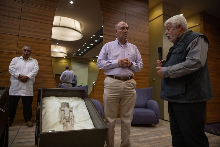 Bu haftanın başlarında da Meksika'daki bir kongre duruşmasında iki 'insan olmadığı' iddia edilen fosiller sunulmuş ve büyük yankı uyandırmıştı. Gazeteci ve ufolog Jamia Maussan'ın uzaylılara ait olduğunu iddia ettiği fosilleri sergilemesi ülkede gündem olmuştu.