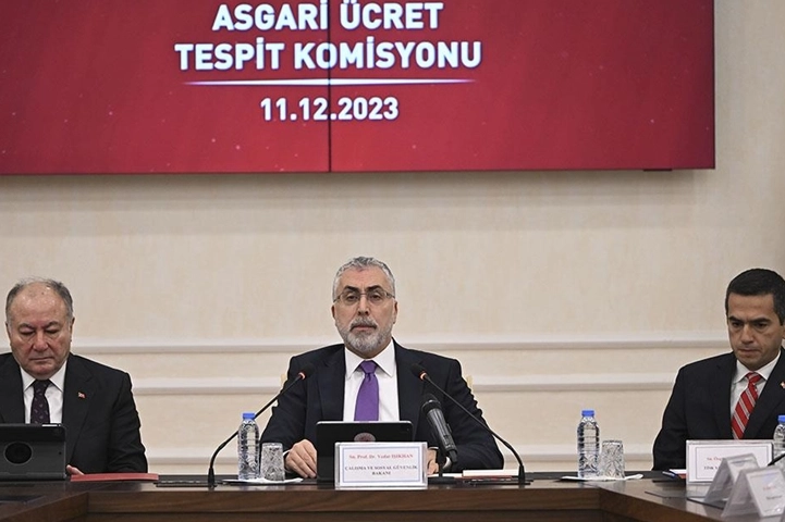 "ÇALIŞANLARIMIZIN GELİRLERİNİ ENFLASYONA EZDİRMEYECEĞİZ"Çalışma ve Sosyal Güvenlik Bakanı Işıkhan da, ilk toplantı öncesinde yaptığı açıklamada, "2024 Yılı Asgari Ücret miktarının, sosyal diyalog ve istişare yoluyla ekonomimizi büyütecek, çalışanlarımızın gelirlerini enflasyona ezdirmeyecek, istihdamı koruyacak ve artıracak en makul noktada belirlenmesi için çalışacağız. Bu süreçte temel hedefimiz, hakem rolü üstlenerek işçi ve işverenlerimizin mutabakatıyla asgari ücreti tespit etmektir." ifadelerini kullandı.