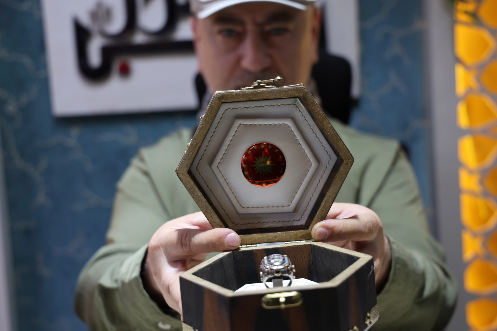 “BİZ BÜYÜK BİR MİLLETİZ AMA BİR YÜZÜĞE ANCAK BU KADAR SIĞDIRABİLİYORUZ”Yüzüğün yapım ve tamamlama aşamasının 1 ay süre aldığını aktaran Servet Küçükdemirel, “Bu aşağı yukarı 1 ay sürdü. Bir ayın içerisinde düşüncelerimiz dahil bizden bu yüzük istenilirken tamamen bize bıraktılar ve bize bıraktıktan sonra biz bunun önce bir hikayesini yazmak zorundaydık. Ne için yapılacaktı bu, ne için yapılmalıydı, kuru kuru bir şey yapılmamalıydı. Ondan dolayı önce Türkiye gündemi, dünya gündemlerini takip edip bir hikayesini oluşturdum. Aşağı yukarı 10 -15 gün civarında hikayesini oluşturmak zorundaydım. Hikayesini oluştuktan sonra direkt tasarıma başladık. Güzel bir tasarım çıktı. Bu sadece bununla kalmıyor, bizim bir sürü değerlerimiz var. Biz büyük bir milletiz ama bir yüzüğe ancak bu kadar sığdırabiliyoruz ve en güçlü olan hükümdarlarımızın veya işte milletlerimizin simgelerini yapmaya çalıştık. Gerçekten çok güzel oldu, inşallah Cumhurbaşkanımız beğenir” diye konuştu.