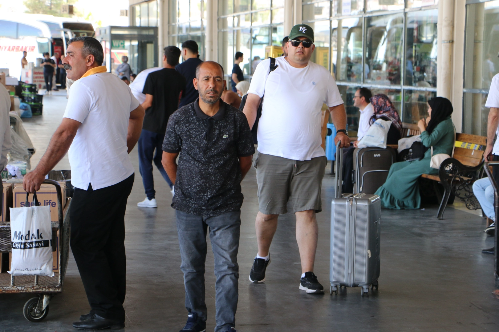 “9 günlük bayram tatili dolayısıyla ek seferler düzenliyoruz. Ama dediğim gibi şehir dışından buraya yolcu getirmede sıkıntı yaşanmaması için buradan biz de ek sefer ekledik. Buradan giden araçlar yarı dolu giderken, şehir dışından dolu olarak geliyor.” Diyarbakır’dan tatil için Muğla’nın Bodrum ilçesine giden Baran Bilmez (18), “Arkadaşlarımla Muğla’nın Bodrum ilçesine gidiyoruz. Buralar yaz aylarında çok sıcak olduğu için artık buradan kaçmak istiyoruz. En azından bayram tatilini de Bodrum’da geçireceğiz. Artık gezmemiz lazım” diye konuştu.