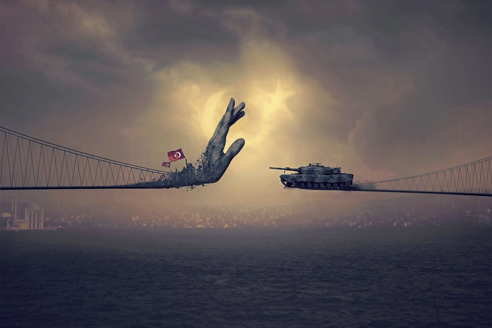 ÜÇ BÜYÜK KÖPRÜDE DEV TÜRK BAYRAKLARIİletişim Başkanlığı, İstanbul Valiliği ve 15 Temmuz Derneği işbirliğiyle 15 Temmuz Şehitler Köprüsü, Fatih Sultan Mehmet Köprüsü ve Yavuz Sultan Selim Köprüsü Türk bayraklarıyla donatıldı.