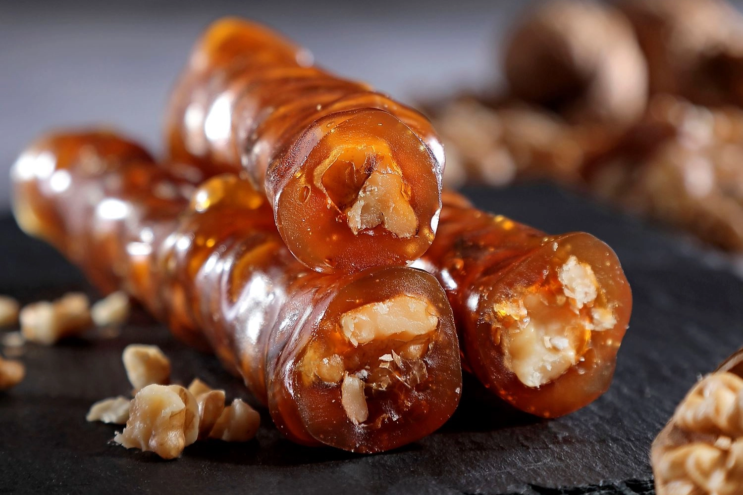 CEVİZLİ SUCUK TÜKETİM ÖNERİLERİCevizli sucuk, ara öğün olarak veya tatlı olarak tüketilebilir.