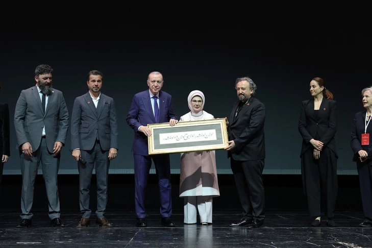 Gala programı kapsamında filmin yönetmeni Murat Çeri, Cumhurbaşkanı Erdoğan ve eşi Emine Erdoğan ile bir araya geldi. Yönetmen Çeri, projenin hayata geçirilme süreci hakkında bilgi verirken, günün anısına Cumhurbaşkanı Erdoğan ve Emine Erdoğan’a özel bir hediye takdiminde bulundu.