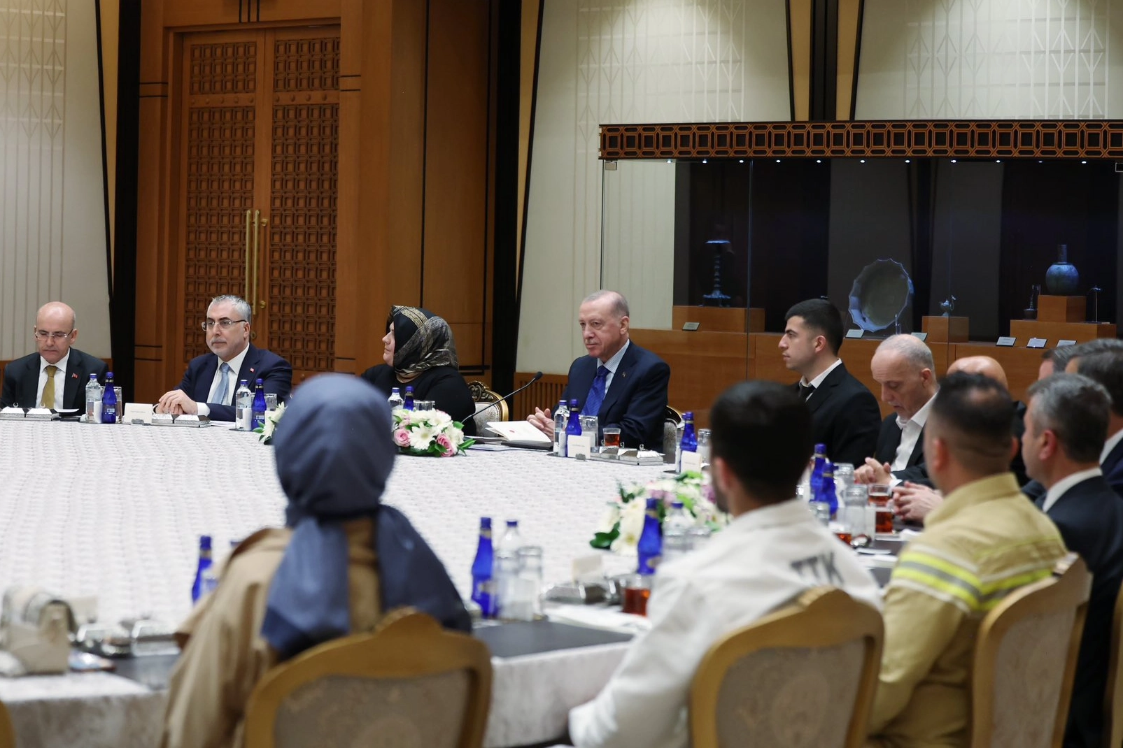 Cumhurbaşkanı Recep Tayyip Erdoğan, 1 Mayıs Emek ve Dayanışma Günü kapsamında işçi, memur ve işveren temsilcilerini Cumhurbaşkanlığı Külliyesi'nde ağırladı. Görüşmede emek ve üretim vurgusu yapan Erdoğan, tüm çalışanların 1 Mayıs Emek ve Dayanışma Günü’nü kutlayarak, “Ülkemizin büyümesi, milletimizin güçlenmesi için alın teri döken tüm kardeşlerime şükranlarımı sunuyorum” ifadelerini kullandı.