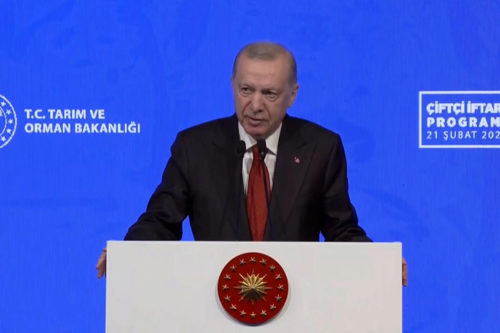 Haliç Kongre Merkezi’nde çiftçilerle bir araya gelen Cumhurbaşkanı Erdoğan, konuşmasına “Cennet vatanımızın her karış toprağında alın teriyle üreten çiftçi kardeşlerime selam olsun” diyerek başladı. Erdoğan, Türkiye’nin kalkınmasına katkı sağlayan çiftçilere teşekkür etti ve tarih boyunca çiftçilerin fedakârlıklarına değindi.