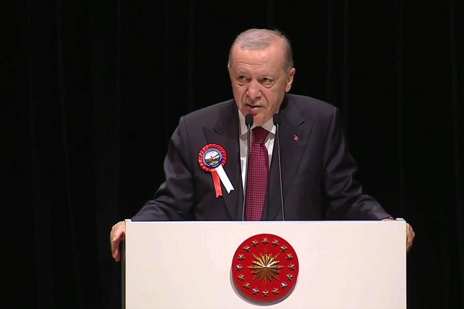 “ZALİMLER KAYBEDECEK, KARDEŞLİK KAZANACAK”Cumhurbaşkanı Erdoğan, Gazze ve Suriye gibi coğrafyalarda yaşanan acılara da dikkat çekerek, “Kimse karamsarlığa kapılmasın, bu coğrafyada barışın güneşi yeniden doğacak” ifadelerini kullandı. Türk milletinin bin yıllık tarihinde nice badireleri atlattığını vurgulayan Erdoğan, “Her zaman dimdik ayakta kaldık, küllerimizden yeniden doğduk” dedi.