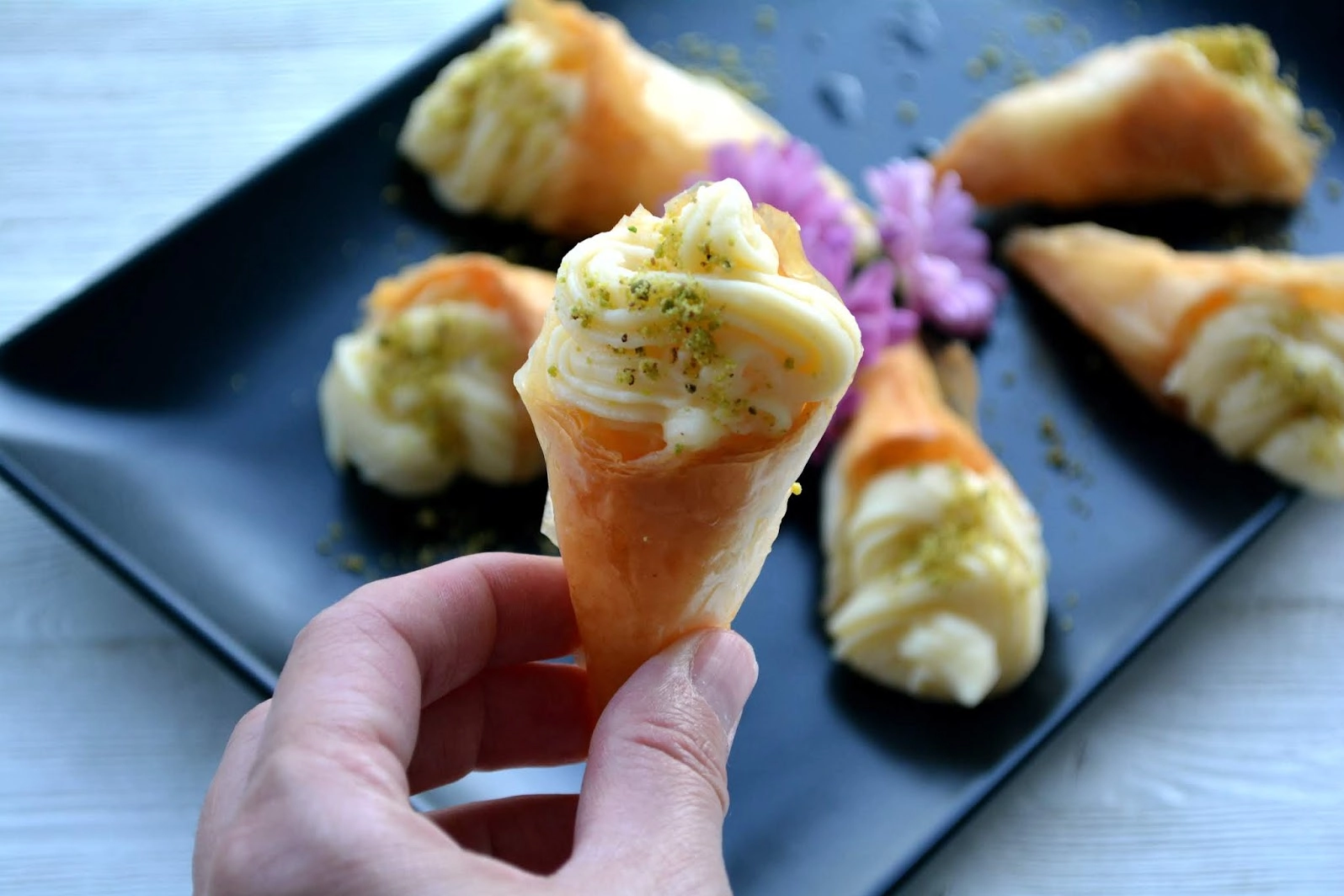 Yufkaları koni şeklini verecek şekilde sarın.