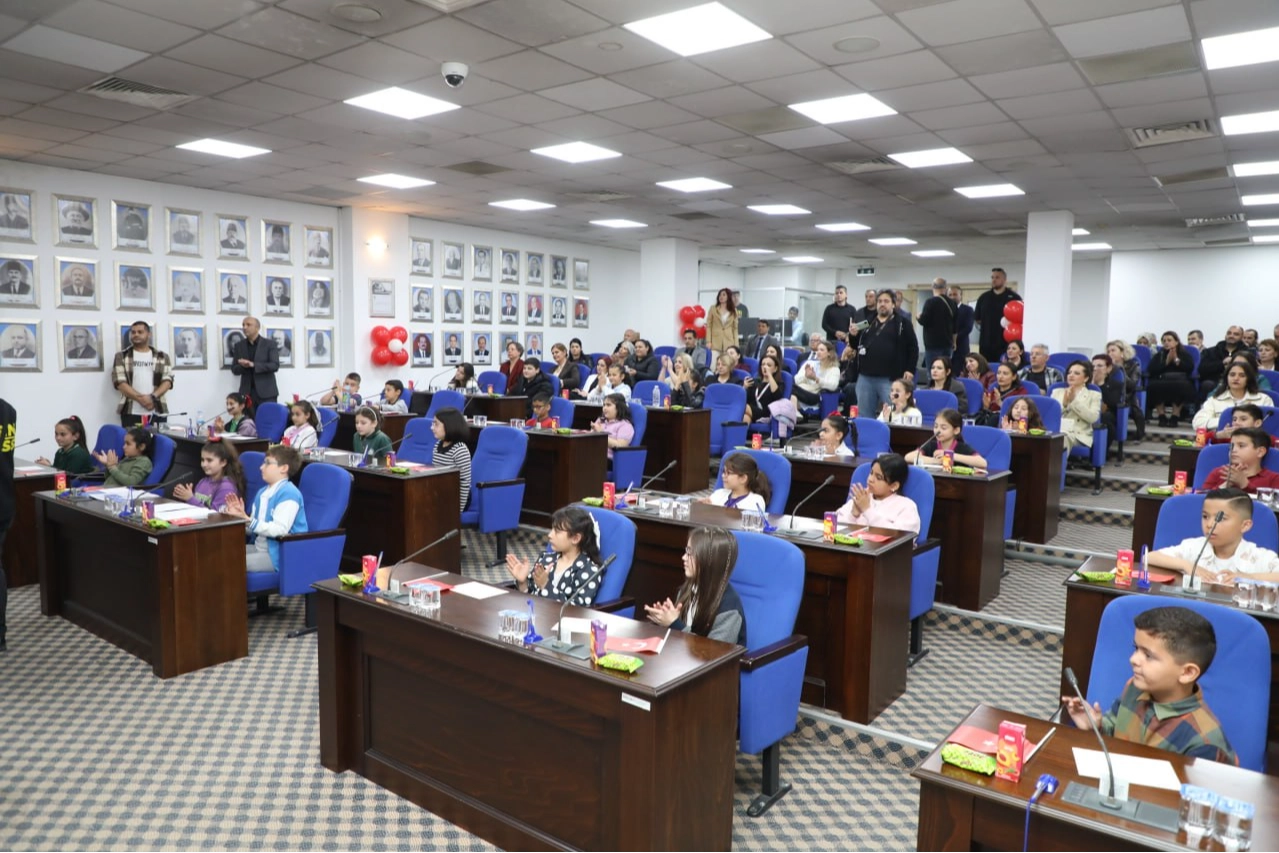 Ardından Belediye Meclis Salonu’nda divan heyetinin oluşturulmasıyla devam eden süreçte, demokratik bir heyecan yaşandı. Kura yöntemiyle belirlenen yeni meclis başkanı Üstek Koleji’nden Artun Gülhan olurken, çocukların yönetimdeki fikirleri meclis salonunda yankılandı.