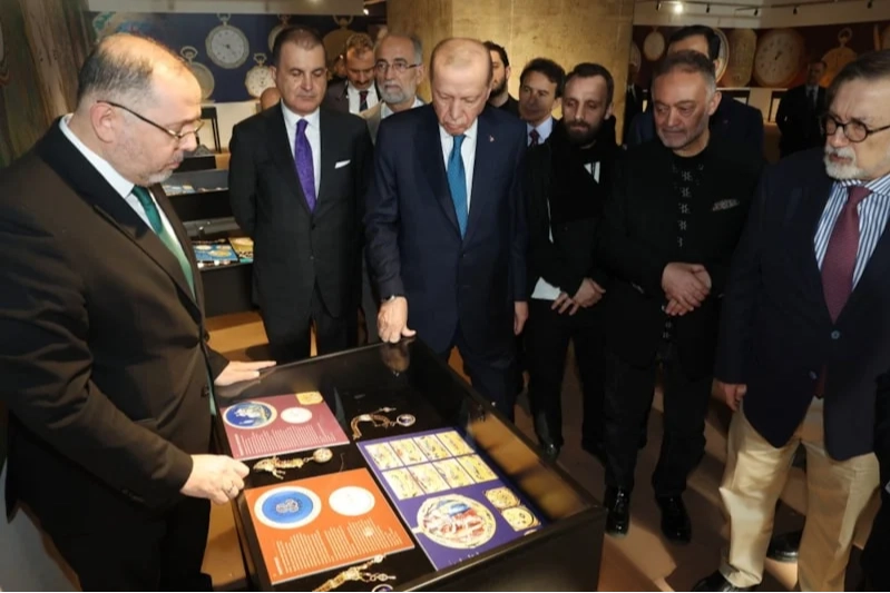 Cumhurbaşkanı Recep Tayyip Erdoğan, MSGSÜ Tophane-i Amire Kültür ve Sanat Merkezi’nde sanatseverlerle buluşan sergiyi inceleyerek koleksiyoner Mehmet Çebi’den eserler hakkında bilgi edindi.