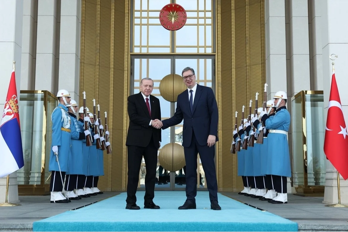 Sırbistan Cumhurbaşkanı Aleksandar Vucic, Cumhurbaşkanlığı Külliyesi’nde resmi törenle karşılandı ve iki lider, ikili görüşmelerin yanı sıra heyetler arası toplantılarda bir araya geldi.