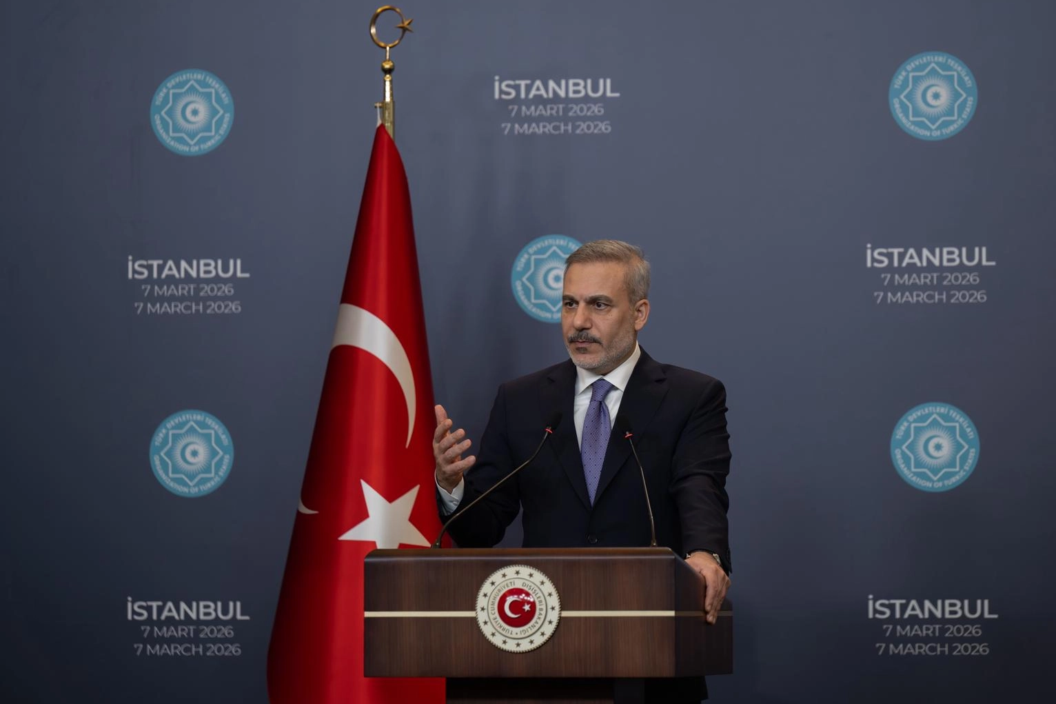Dışişleri Bakanı Hakan Fidan, Türk Devletleri Teşkilatı (TDT) Dışişleri Bakanları Konseyi Gayriresmi toplantısının ardından düzenlenen basın toplantısında açıklamalarda bulundu.