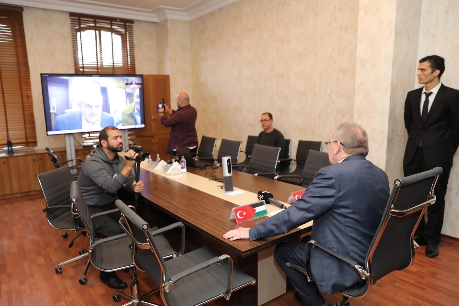 Büyükşehir Belediye Başkanı Mustafa Demir, Samsun’un ‘kardeş şehri’ olan Filistin’in Nablus Belediye Başkanı Dr. Sami A. Hijjawi ile telekonferans üzerinden görüntülü olarak görüştü.