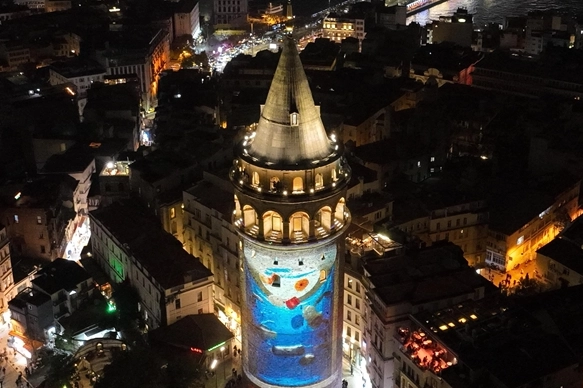 Forum kapsamında Galata Kulesi’nin yüzeyine, sürdürülebilir gelecek, doğa koruma ve atık yönetimi konularına dikkat çeken çevre temalı görseller yansıtıldı. Renkli ışıklar ve özel animasyonlarla yapılan gösteride, sıfır atık kültürünün yaygınlaştırılması, atık miktarının azaltılması ve çevre bilincinin güçlendirilmesi mesajı verildi.