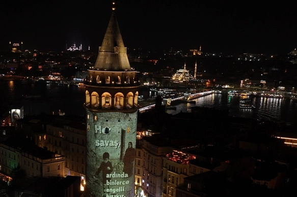 İstanbul’un simgelerinden Galata Kulesi, 3 Aralık Dünya Engelliler Günü kapsamında Türkiye Beyazay Derneği’nin düzenlediği özel bir gösterime sahne oldu. Kuleye, savaşlar sonucu engelli kalan çocuklar ve sivillerin yaşadıkları anlatan bir video yansıtıldı. Videoda, "Savaş nerede olursa olsun, ardında sadece yıkım bırakır. Yıkılan sadece şehirler değildir. Hayaller yıkılır, bedenler sakatlanır, hayatlar yarım kalır. Her savaş, ardında binlerce engelli bırakır. Biz diyoruz ki savaşları engelleyin, engelli kalmayalım." ifadeleri yer aldı.