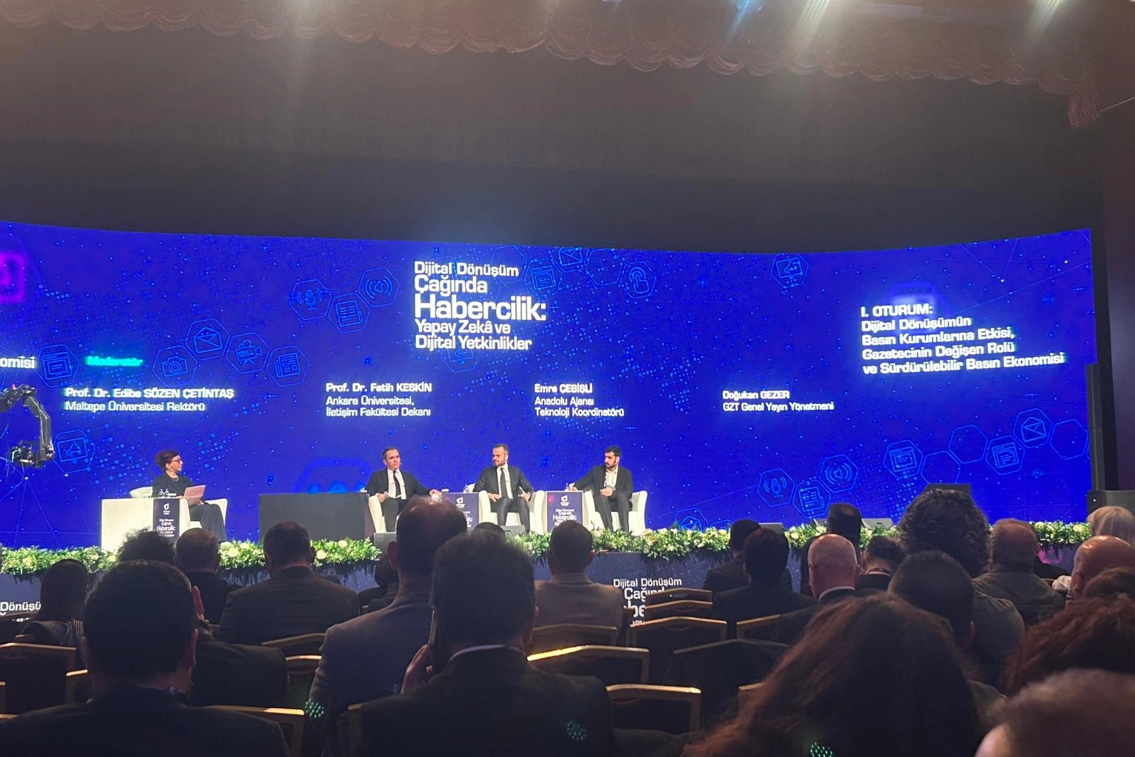 Yapay zeka teknolojilerinin habercilik süreçlerine etkisi, dijital yetkinliklerin önemi ve medya kuruluşlarının yeni döneme nasıl uyum sağlaması gerektiği katılımcılar tarafından değerlendirildi.