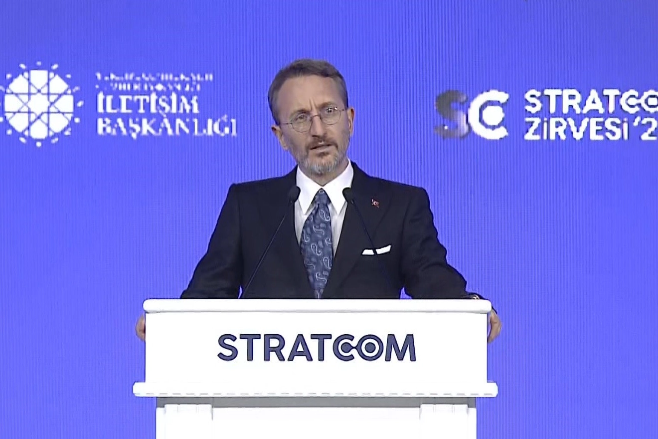 İletişim Başkanı Altun konuşmasının devamında, “Küresel adaletsizlikle, onun arkasındaki emperyalist zihniyetle mücadelede vicdan sahibi stratejik iletişimciler anahtar bir konumdadır. Biz hak geldiğinde batılın zail olduğuna inanıyoruz. Bunu inancımızın bir gereği olarak görüyoruz. Tam da bu nedenle içinde yaşadığımız bu hibrit tehditler çağında, hakikat mücadelesi vererek yalan endüstrisine galabe çalmak zorunda olduğumuza inanıyoruz. Önce farkındalık oluşturacağız ardından küresel alanda örgütleneceğiz ve etkin bir koordinasyon ile yalana, dezenformasyona ve hibrit tehditlere karşı mücadele edeceğiz” ifadelerini kullandı.