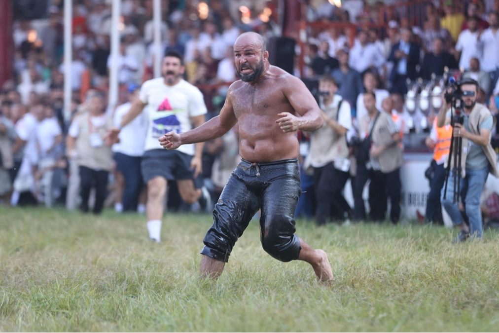 Güreşlerin başcazgırı Emin Ger’in salavatı eşliğinde, Antalya Kumlucalı “geri vitesi olmayan” 36 yaşındaki Orhan Okulu ile “sert kaya” lakaplı 26 yaşındaki Feyzullah Aktürk çayıra çıktı. Zorlu rakiplerini eleyerek finale kadar gelen iki başpehlivan, tribünleri selamlayarak müsabakaya başladı.