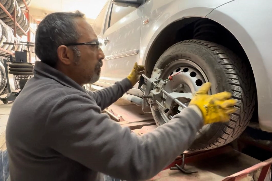 Havaların soğumaya başlamasıyla birlikte sezona bağlı olarak yoğun bir döneme giren esnaf gruplarından biri de oto lastikçiler oldu. İş yoğunluğunun yaklaşık 16 gün kadar önce başladığını belirten oto lastikçi esnafı, vatandaşlar yaz tekerleklerinden, kış tekerleklerine geçmek için oto lastikçilerinin yolu tuttu. İlçede 30 yıldır rot balans ve lastik üzerine hizmet veren Ramazan Özdel isimli usta, ilçede soğuk havaları ve sezonun başlamasıyla araçların kış lastiklerine geçmek için iş yerinde yoğunluk yaşadıklarını belirtti. Oto lastik ve rot balans ustası Ramazan Özdel, ‘’Yüksekova’nın coğrafyasından dolayı rakımının yüksek olduğu için sürücüler araç lastiklerini erken değişim yapmaya başladı. Kış lastiği uygulaması normalde 1 Aralıkta başlıyor. Sürücüler lastiği seçerken doğru lastiği seçmesi gerekiyor. Genelde yumuşak ve vakumlu lastiği tercih ediyoruz. Sürücülerimizin şöyle bir yanılgısı var. Sadece ön iki lastiği değiştireyim yeterlidir mantığı var. Bu yanlıştır. Araç dört tekerlekli dördünü de değiştirmek gerekir. Özellikle hava sıcaklığının 8 derecenin altında seyrettiği dönemde yavaş yavaş değiştirmemiz lazım. Çünkü yaz lastiğinde bu düşük sıcaklıkta frenleme olmuyor. Sürküleme dediğimiz yaz lastiğinin yapısı gereği sıcağa endeksli bir lastik. Kış lastiği ise 8 derecenin altında kullanılan bir lastiktir. 16 gündür yoğunluk var iş yerimizde. Bizde vatandaşımıza en iyi hizmeti vermek için çabalıyoruz. Şu an 4-5 işlemden sonra takma işlemlerini yapıyoruz” dedi.
