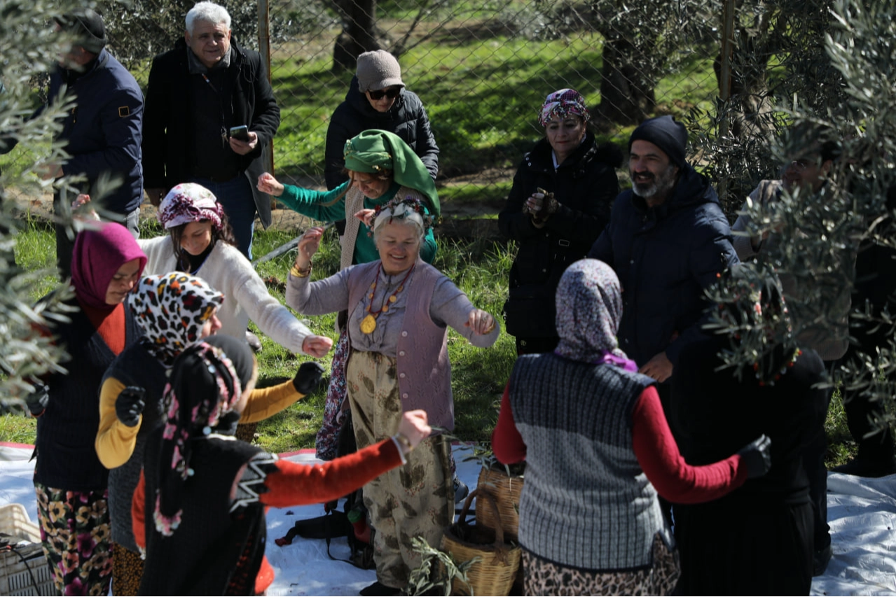 Hasat töreninde, işçilerin temsilen zeytin ağacına bağladığı kahyanın kurtarılması sahnesi de canlandırıldı. Kahyanın, çalışanlara verilen bahşiş ile ağacın bağından kurtarılması, izleyenlere büyük keyif verdi.