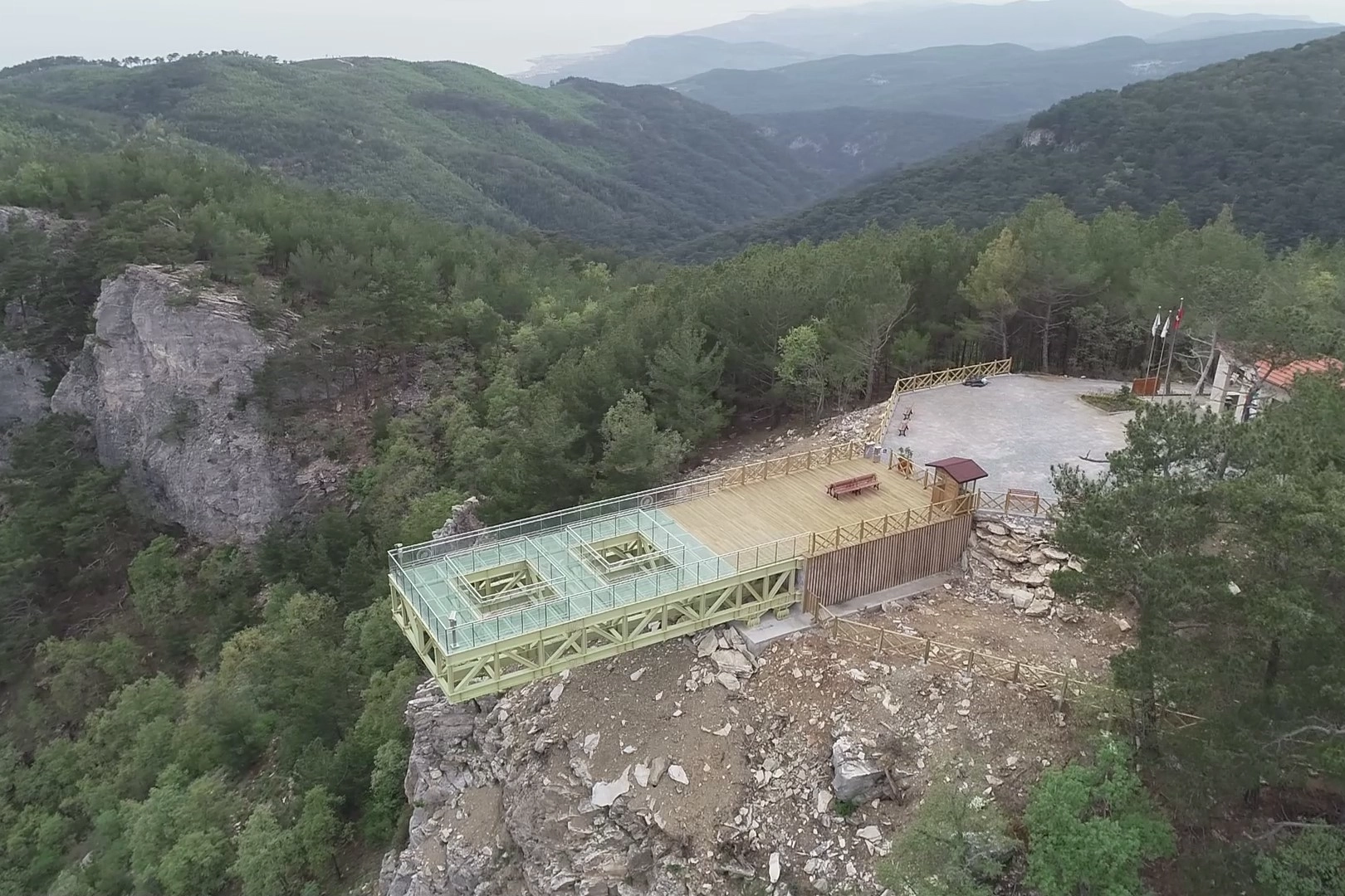 Kazdağları’nda Şahin Deresi Kanyonu'nda bulunan Şahin Deresi Cam Seyir Terası'nın aşırı sıcaktan dolayı zemin camının bir bölümünün çatladı.