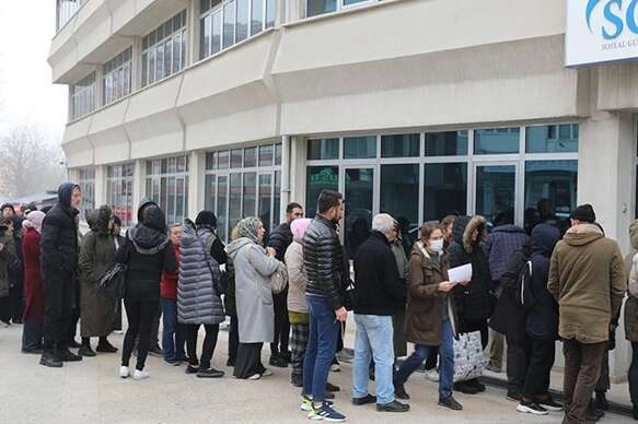 Saat 08.30'da sıraya girdiğinde yoğunluğun olduğunu ancak görevli personelin doldurulan evrakı toplamasının ardından sıranın azaldığını anlatan Yavuz, "Şimdi de bize sıra gelecek. Çalışamayan arkadaşlarımız vardı onlar için önemli. Biz yine çalışıyoruz olsa da olur olmasa da. Ama yine devletimiz sağ olsun elinden geleni yapıyor. Yapmasa da bizim üzülmemiz, gücenmemiz olmayacaktı." ifadelerini kullandı.