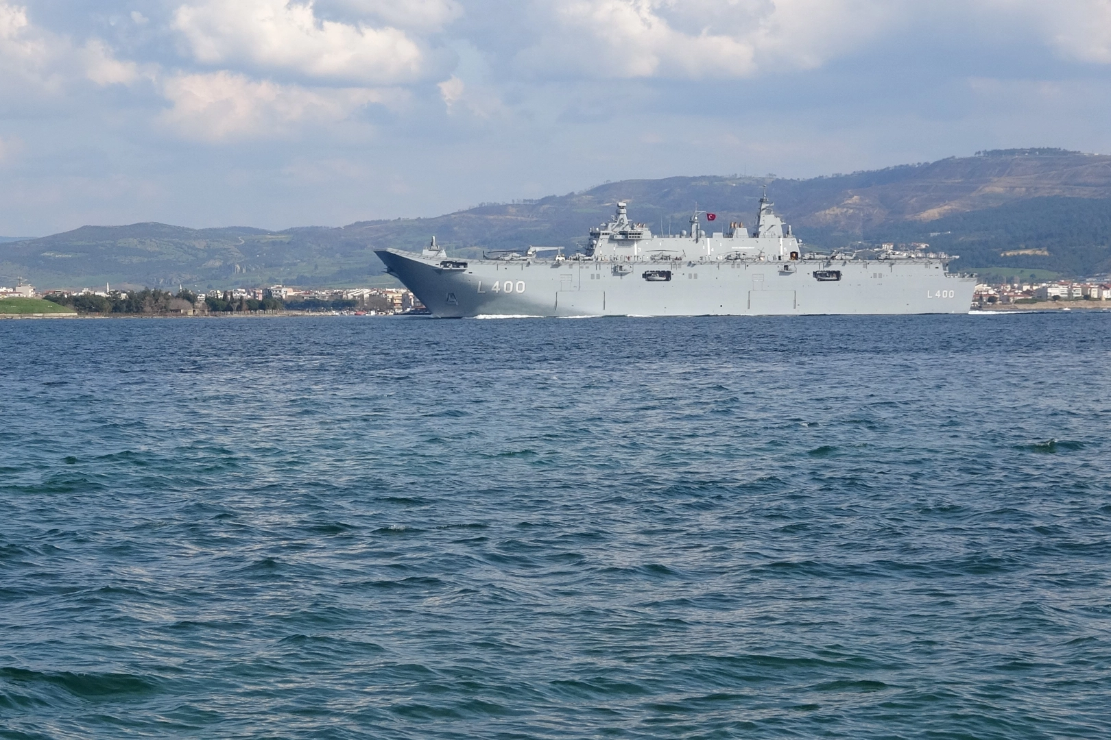 Dünyanın ilk silahlı insansız hava aracı (SİHA) gemisi TCG Anadolu, bugün Çanakkale Boğazı’nda düzenlenen geçit provasına katıldı. Abidedeki törende ayrıca SOLOTÜRK gösteri uçuşu gerçekleştirecek.