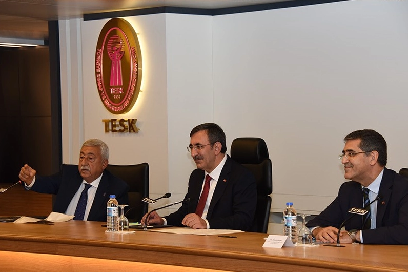 Cumhurbaşkanı Yardımcısı Cevet Yılmaz ve Cumhurbaşkanlığı Strateji ve Bütçe Başkanı İbrahim Şenel TESK Genel Merkezi’ni ziyaret etti.