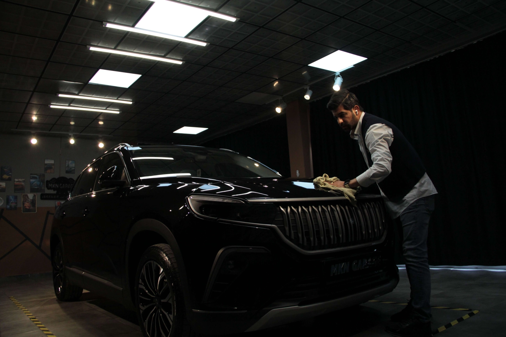 Araca uyguladığı işlemleri anlatan Nalcı, kaportayı dış etkenlerden korumak için kaplama yapıldığını anlattı. Togg'a üst seviye bir seramik kaplama yaptıklarını söyleyen Nalcı, “İlk önce aracımızın demir tozu temizliğini yaptık. Soğuk kil, katı kil işlemini uyguladık. Daha sonra polisaj işlemleri yapıldı. Son olarak da seramik işlemimizi yaptık. Seramik, aracın boyasını ve verniğini beş yıl boyunca dış etkenlerden koruyacak. Garanti belgesiyle birlikte müşterimize teslim edeceğiz” ifadelerini kullandı.