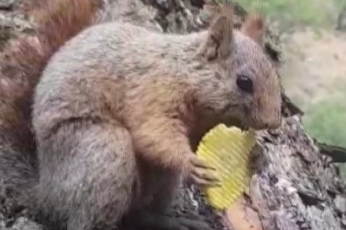 Tunceli ile Ovacık ilçesi arasında yer alan Halbori Gözelerinde piknik yapan bir vatandaşın yanına gelen yabani sincap kendisine uzatılan cipsten alarak keyifle yedi.