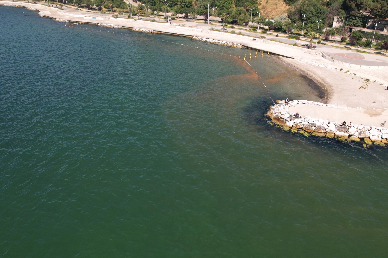 İstanbul Büyükçekmece’de son günlerde havaların ısınmasının ardından deniz kıyısında ve açıklarında suyun rengi değişti. Değişime alg patlaması olarak adlandırılan sudaki yosun yoğunluğundaki artışın neden olduğu öğrenildi. Kıyı şeridinde birçok yerde deniz rengi kızıllaşırken bölge dron ile havadan da görüntülendi.