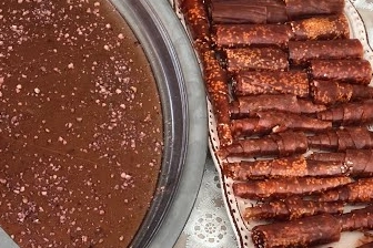 Hazırlanan karışım yağlı kağıt serilmiş tepsiye yayılır.Kalınlığı yaklaşık 1 cm olacak şekilde düzleştirilir.Üzerine kuru yemişler serpiştirilir.