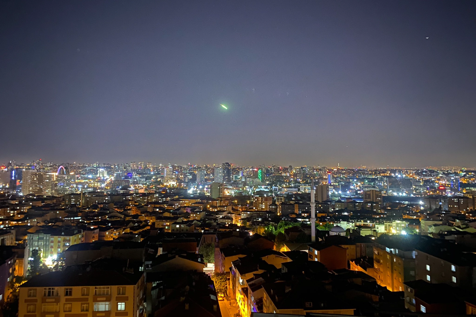 İstanbul'un pek çok noktasında vatandaşlar, gökyüzünden süzülen parlak ışık kümesini cep telefonlarıyla kaydetti.