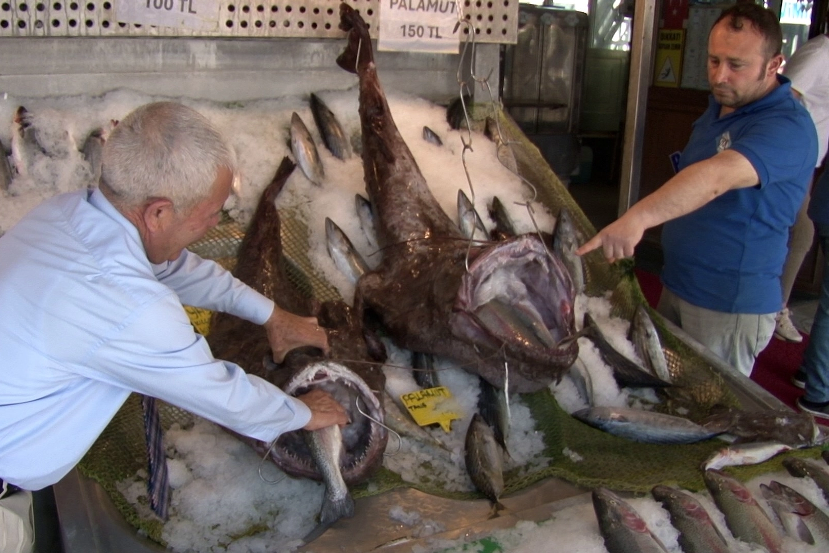 Müze kurucusu Kenan Balcı tarafından tezgaha konulan 2 dev balığın yanına bırakılan normal boyuttaki başka bir Fener Balığı da balıkların büyüklüğü gözler önüne serdi. Fener Balıklarının ilginç avlanma yöntemi hakkında bilgiler veren Balcı, birkaç gün sonra balıkların etinin satılacağını iskeletinin ise mumyalanmış balık müzesinde ücretsiz sergileneceğini söyledi. Dev Fener Balıkları ise görenleri adeta hayrete düşürdü.