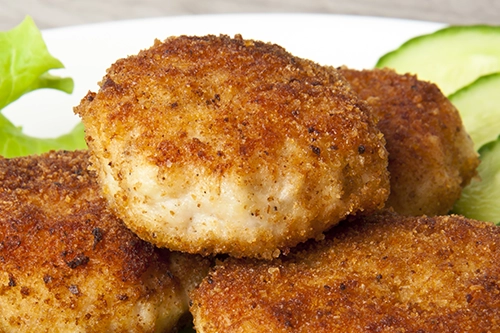 Kızarmış tavuk köftelerini sıcak olarak servis edin. İsteğe göre patates kızartması, pilav veya salata ile servis edebilirsiniz.