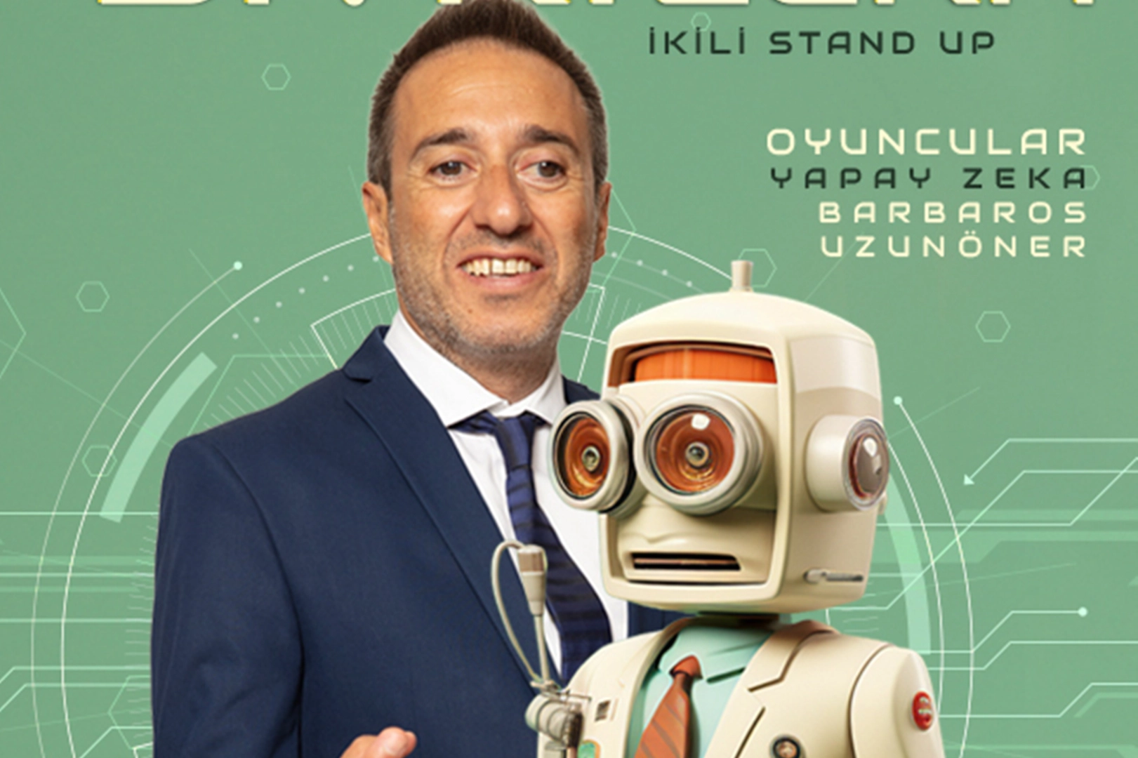 “Yapay Zeka ve Sivri Zeka” adını taşıyan iki kişilik stand-up tarzındaki oyunda, iki farklı zekâ sahnede karşı karşıya geliyor; konuşuyor, tartışıyor ve izleyiciyi güldürmek için adeta rekabet ediyor.