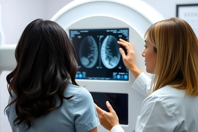 Çekim Süreci:Radyolog, memeyi X-ray cihazına yerleştirir. Meme, iki plaka arasında sıkıştırılır. Bu, görüntülerin net çıkması için önemlidir. Sıkıştırma kısa bir süre sürer ve çoğu kadın için rahatsız edici olsa da dayanılabilir bir durumdur.
