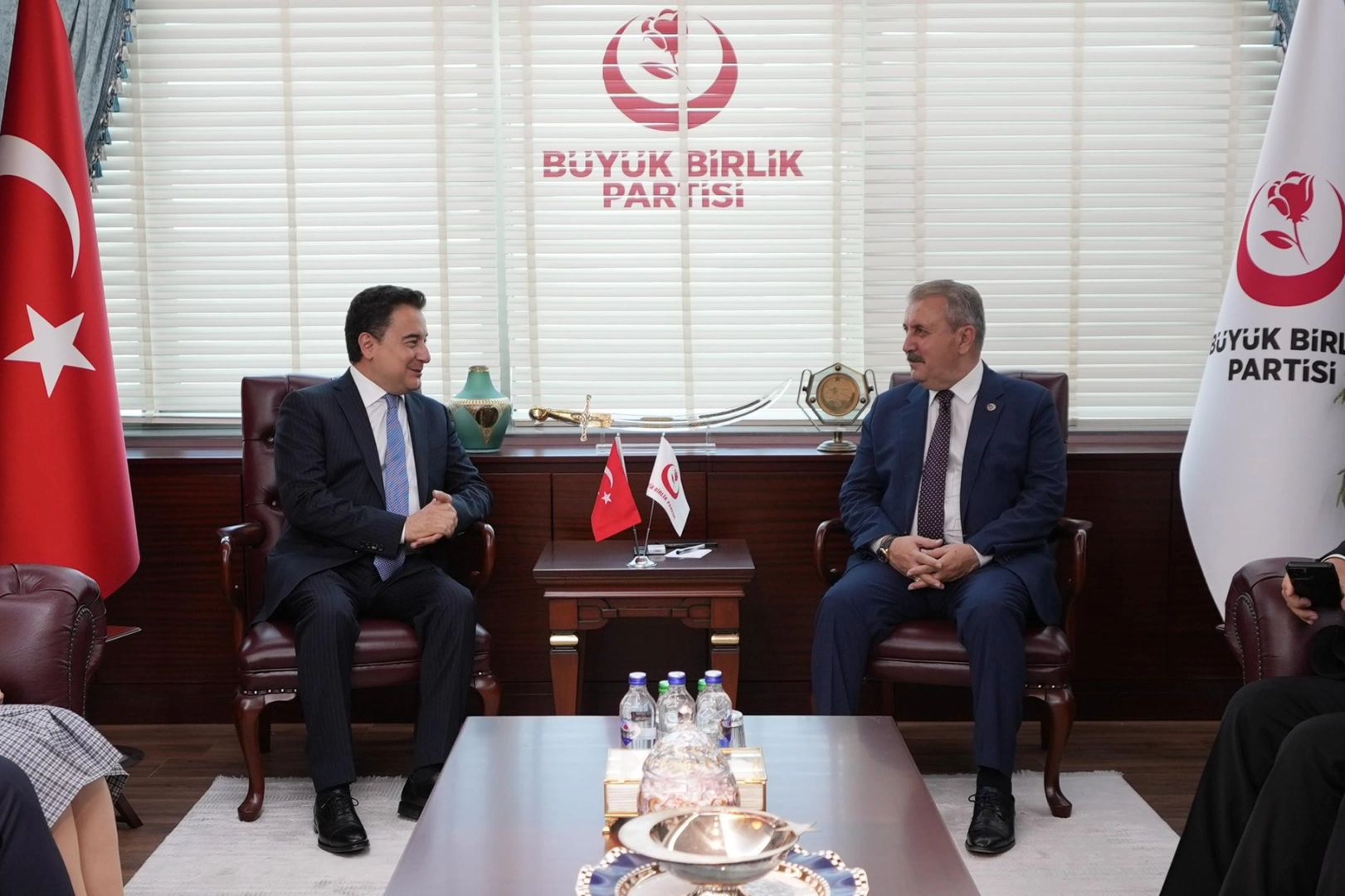 DEVA Partisi Genel Başkanı Ali Babacan ve beraberindeki heyet Büyük Birlik Partisi Genel Başkanı Mustafa Destici tarafından yeni genel merkez binasına ağırlandı.