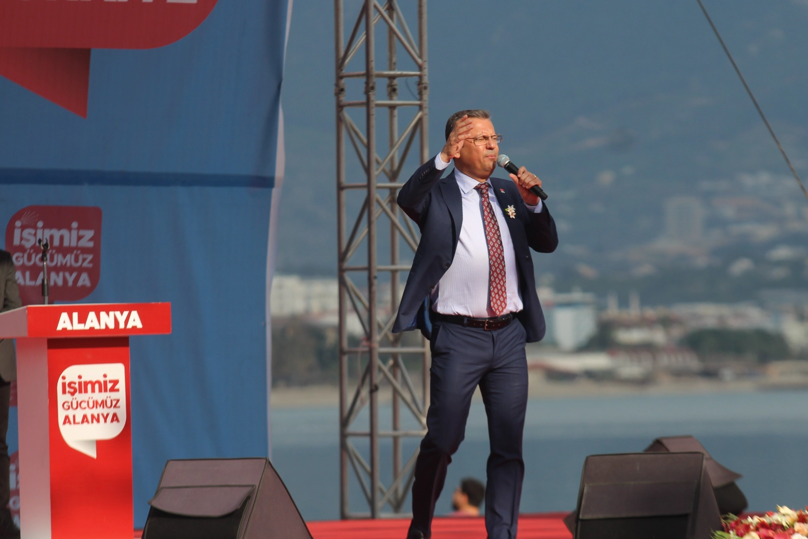 Alanya’da bir ittifak kurduklarını söyleyen Özel, "Alanya’da benim bütün Türkiye’de söylediğimi yapıyoruz. Alanya’da bir Alanya ittifakı kuruyoruz. İlçe başkanımız aylar öncesinden gelerek örgütümüzün tam mutabakatını iletti. Sadece CHP’lilerin değil, geçmişte birlikte ittifak yaptığımız iyi insanların, milliyetçi demokratların, geçmişte AK Parti’nin içinde olup ayrılan muhafazakar demokratların birlikte destekleyeceği, yerlinin yabancının sevdiği insan ayırmayacak olan Alanya ittifakının adayı Osman başkanı getirdiler partimiz onu bağırına bastı. Alanya bağrına bastı” diye konuştu.