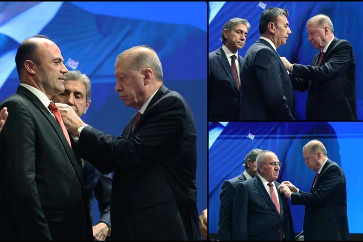 Cumhurbaşkanı Recep Tayyip Erdoğan, AK Parti Merkez Karar ve Yönetim Kurulu (MKYK) toplantısı öncesinde partisine katılan dört belediye başkanına rozetlerini verdi.