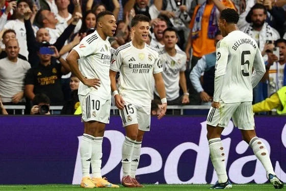 Ev sahibi ekibin gollerini 22. dakikada Kylian Mbappe ve 43. dakikada Jude Bellingham kaydederken, Barcelona’nın tek golü 38. dakikada Fermin Lopez’den geldi. Real Madrid’de Mbappe, 52. dakikada kullandığı penaltı atışından yararlanamadı.