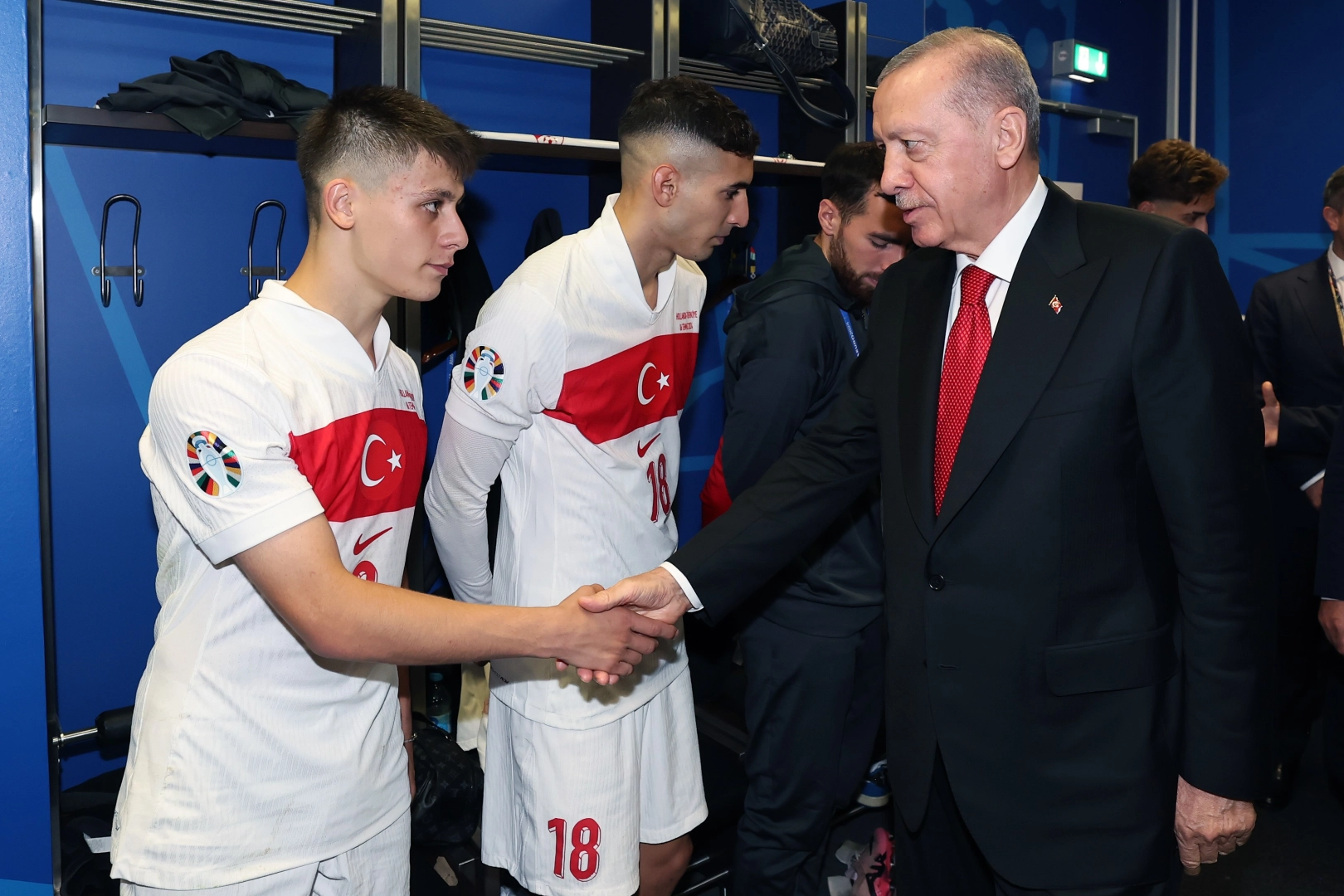 Karşılaşma için Almanya'ya giden Cumhurbaşkanı Recep Tayyip Erdoğan, müsabakayı Berlin Olimpiyat Stadyumu'nda protokol tribünden takip etti. Cumhurbaşkanı Erdoğan, müsabaka sonrası Türk Milli Takımı soyunma odasına inerek, tek tek futbolcuları tebrik etti.