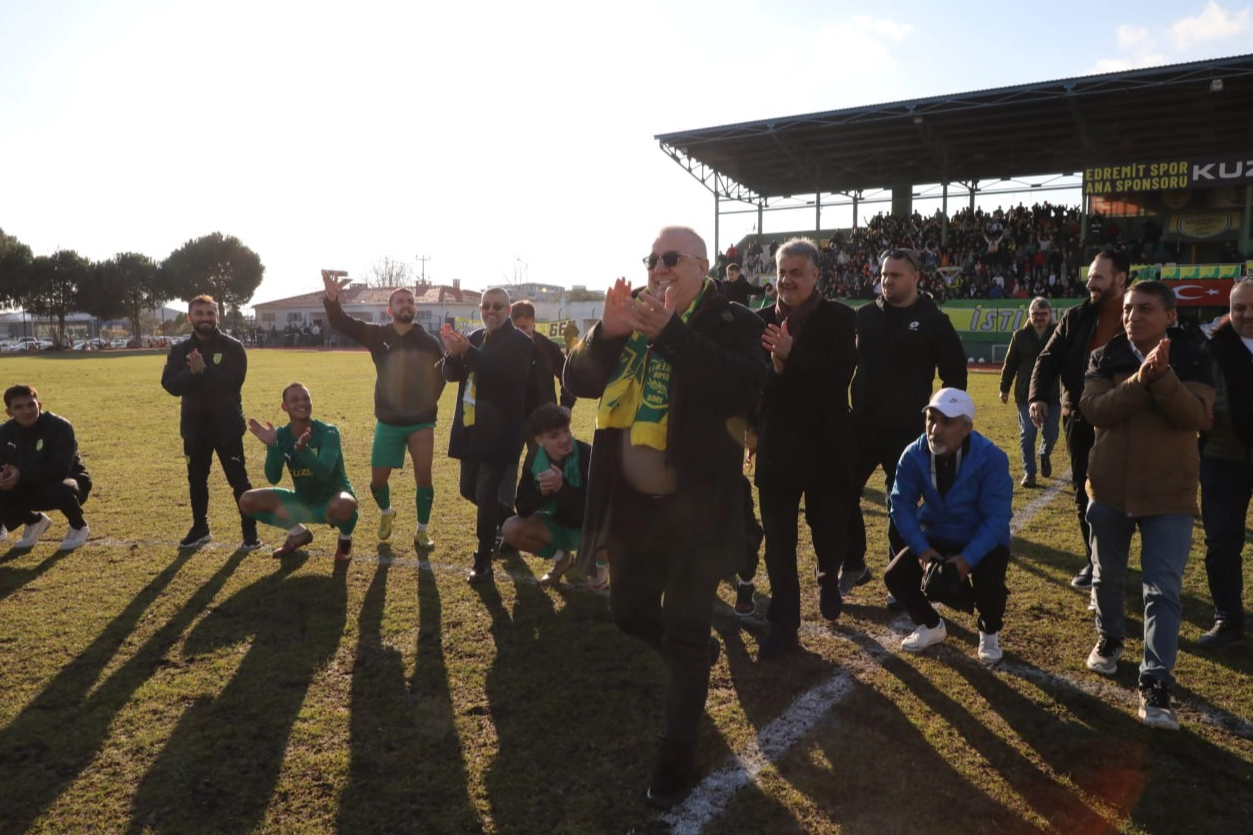 Maçın ardından sahaya inen Edremit Belediye Başkanı Mehmet Ertaş, futbolcuları tebrik etti. Edremitspor yönetimi, teknik heyeti ve futbolcular, bu galibiyeti Başkan Ertaş’a doğum günü hediyesi olarak sundu. Ayrıca, GençEdrolular taraftar grubu da takımı ve başkanı yalnız bırakmadı.
