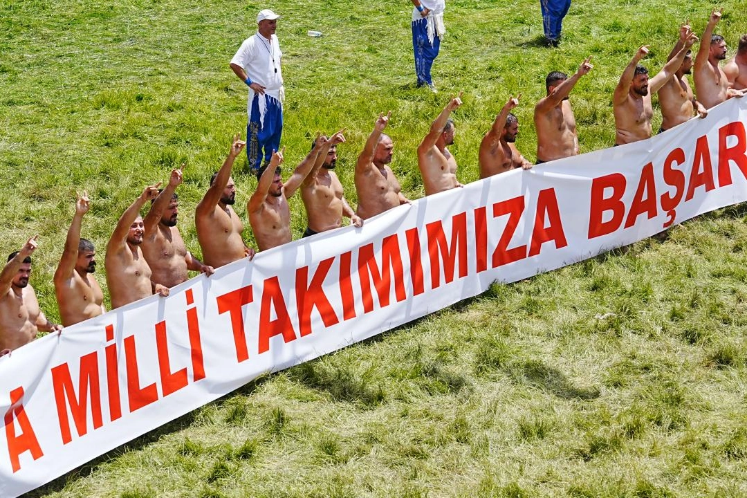 Baş boyunda güreşecek pehlivanlar, seyirciye takdim edildi, pehlivanlar aynı zamanda "A Milli Takımımıza başarılar dileriz" pankartı da açtı. Bu sırada güreşecek tüm başpehlivanlar, "bozkurt" işareti yaptı.