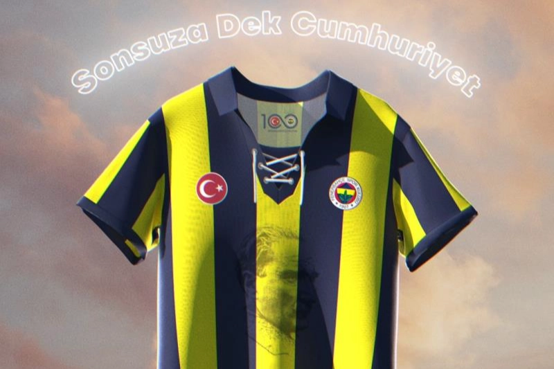 Trendyol Süper Lig'in 10. haftasında Fenerbahçe, deplasmanda Pendikspor ile karşılaşacak. Sarı-lacivertliler, bu mücadele öncesi Cumhuriyet'in 100. yılına özel forma hazırlattı. 1923 yılında giyilen formadan ilham alınarak tasarlanan formanın üzerinde Türkiye Cumhuriyeti'nin tarihinden kesitler yer aldı. Formanın ön bölümünde Mustafa Kemal Atatürk'ün portresi, sırt kısmında ise Türkiye Büyük Millet Meclisi’nin önünde Cumhuriyeti'n 6. yılında çekilen tarihi fotoğraf bulunuyor.