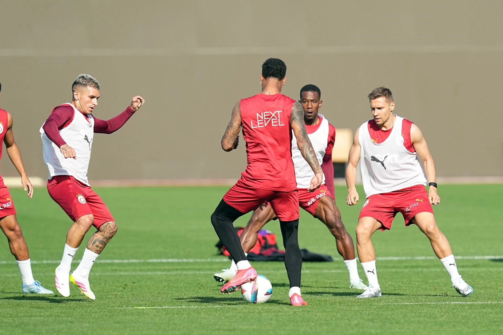 Teknik Direktör Okan Buruk yönetiminde yapılan antrenman, dinamik ısınma hareketleriyle başladı. Ardından futbolcular, iki gruba ayrılarak 10’a 2 pas ve topa sahip olma çalışması yaptı. Günün idmanı, taktik ağırlıklı bölümlerle tamamlandı.