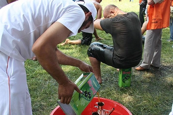 Kırkpınar'da çayırda güreşecek pehlivanlar için kullanılacak 2 ton zeytinyağı, Sarayiçi Er Meydanı'na getirildi.